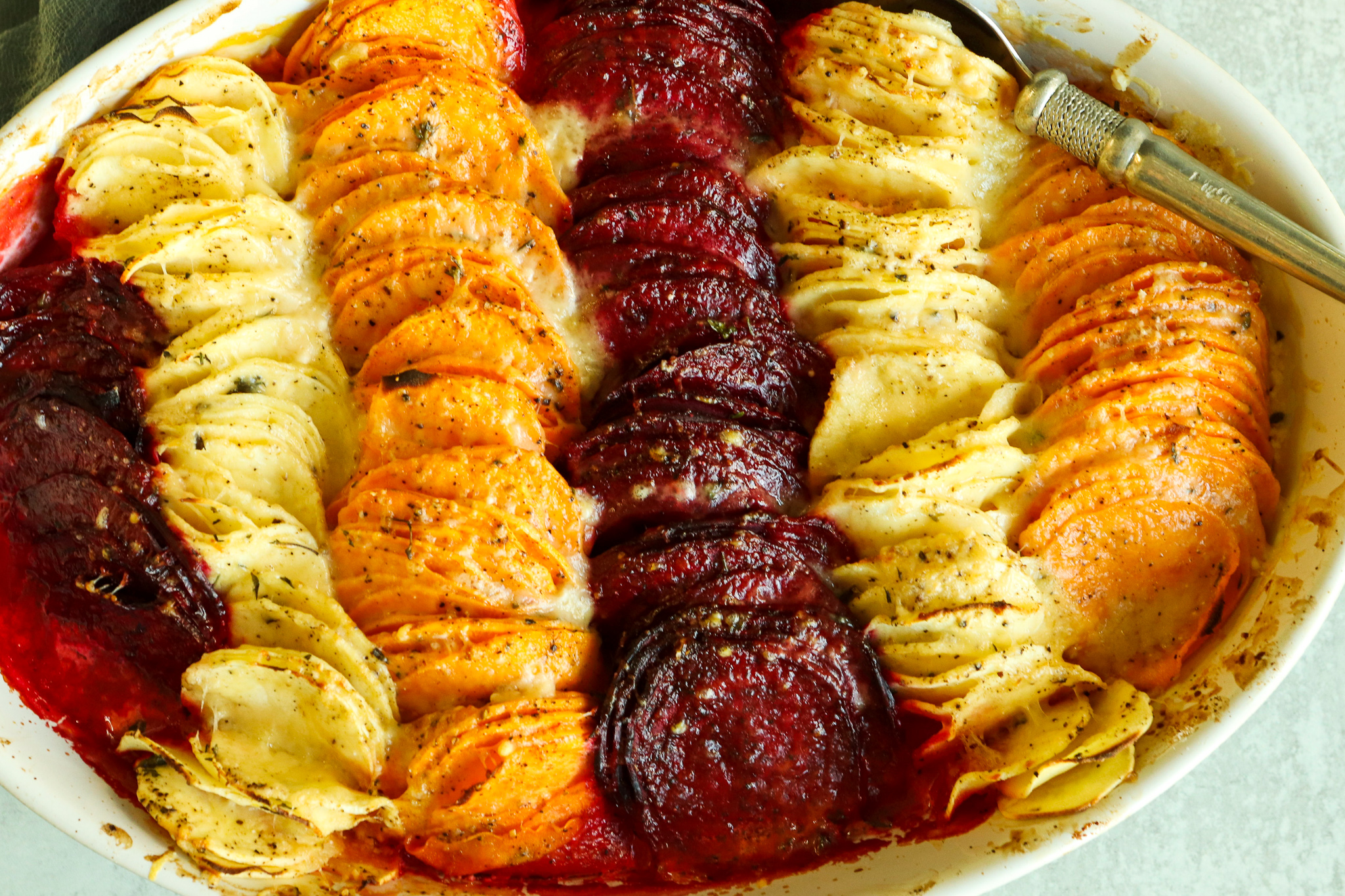 Cheesy Root Vegetable Gratin by Sofia Misabishvili (@sofiaafoodie) 🥔🥕🧀✨🌿