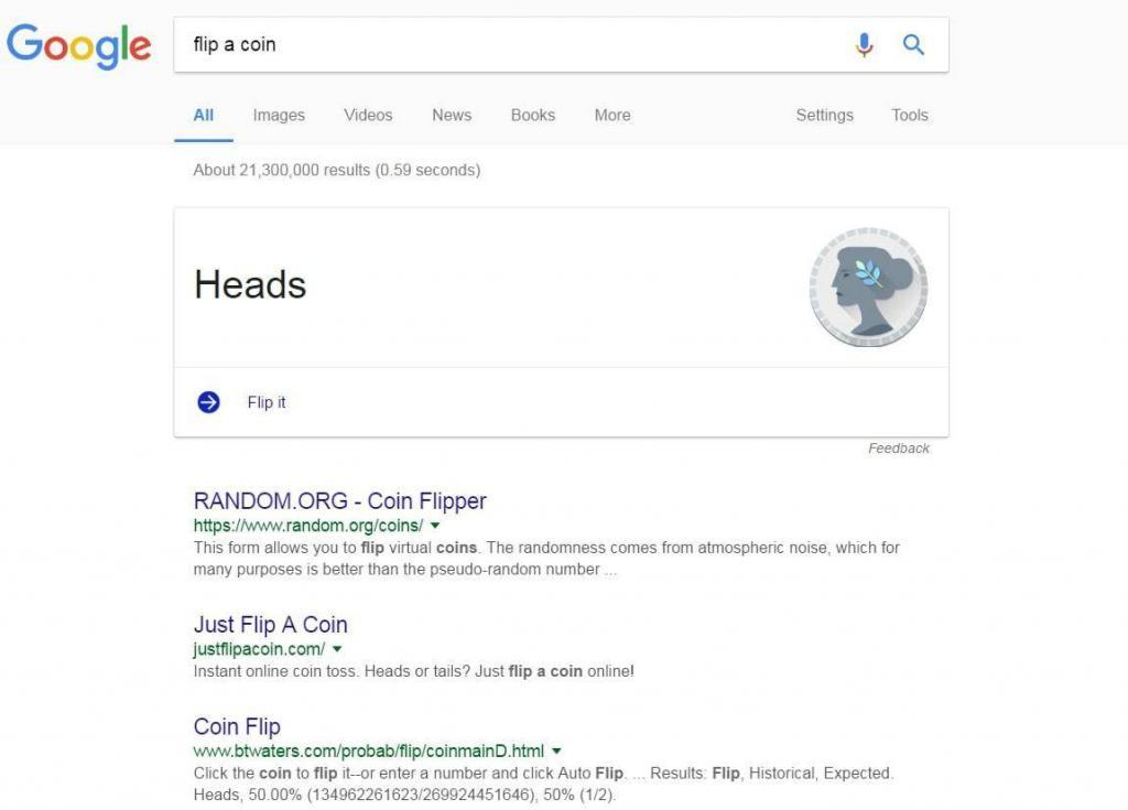 We have all flipped a coin in order to decide something with another person. The folks at Google seem to do this so much that they had to include a card with an animated coin flip. This time at least, you will know that it is a fair deal.