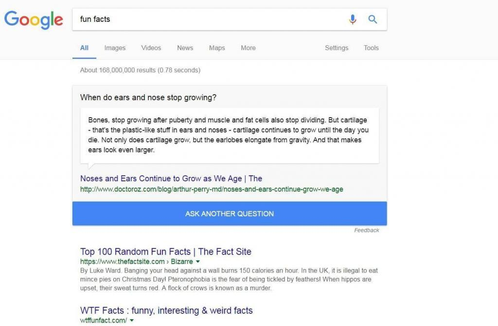 Do you know when ears and nose stop growing? If you feel like you want to learn something new, go to the Google search bar and write down “fun facts” and be amazed.