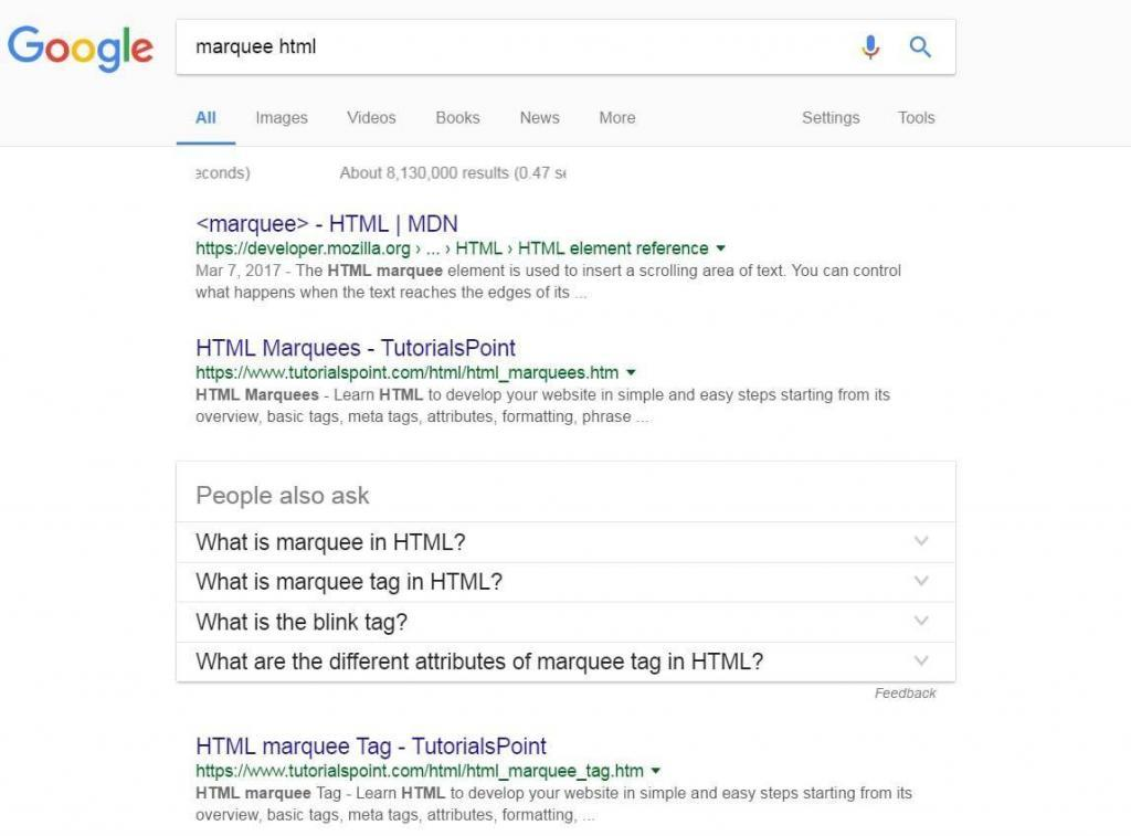 Another interesting secret hidden withing your Google page can be seen when looking for “marquee html”. You will notice that the results count will slowly move from right to left on the page. Check it yourself and see.