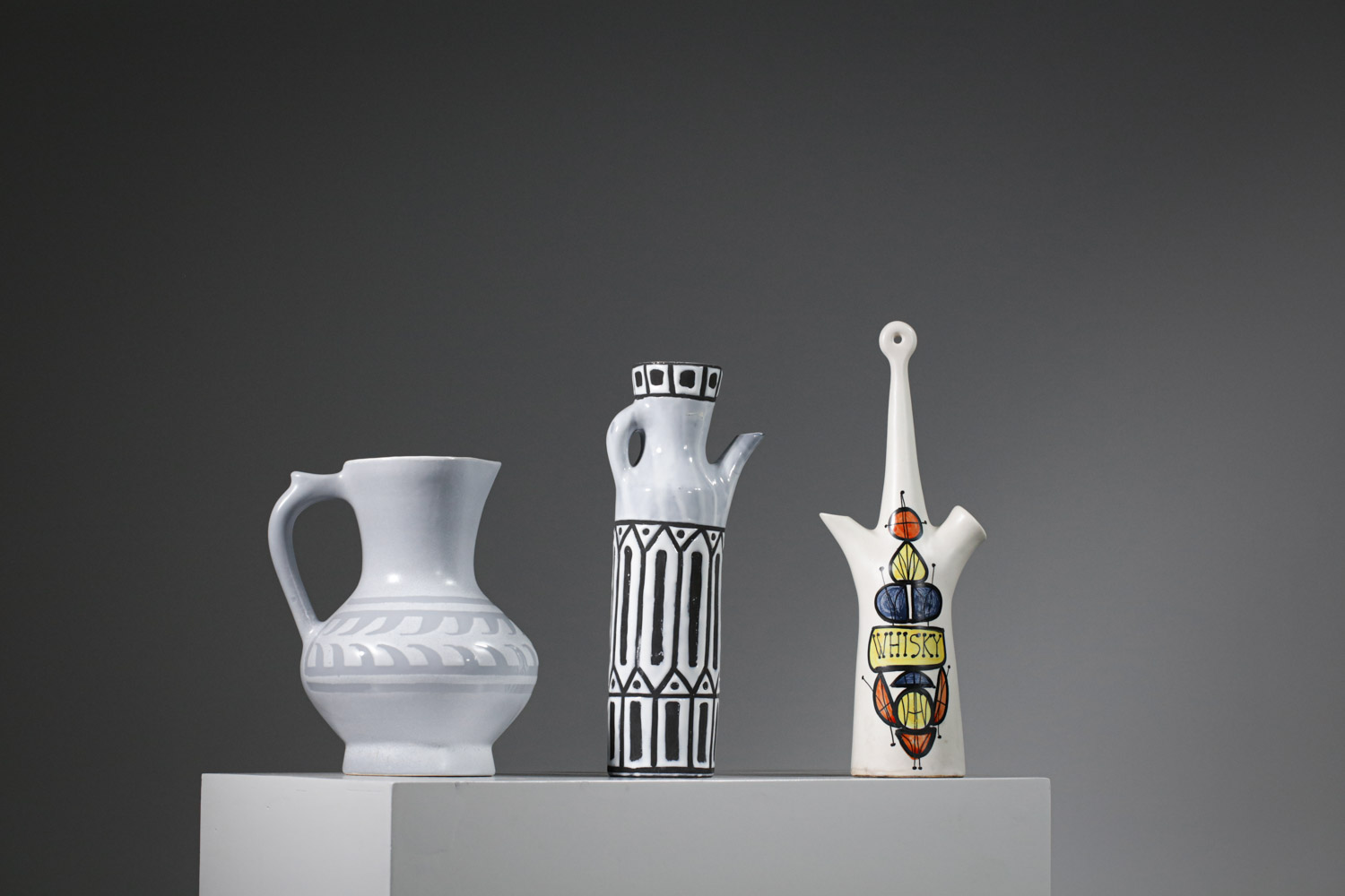 In 1946, Capron co‑founded Atelier Callis with Robert Picault and Jean Derval. Immersed in a community that blended tradition with experimentation, he created tiles, plates, and vases that fused Mediterranean warmth with modern graphic clarity. This period established him as a key figure in the postwar revival of French ceramics.